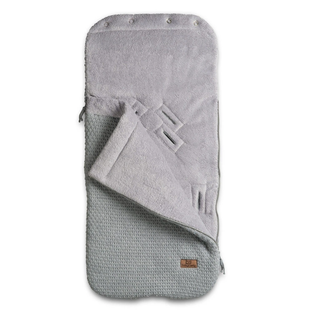 - Buitenzijde: lichtgrijs kabel gebreid.