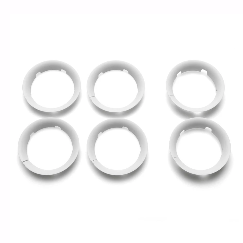 - Set van 6 (halve)wieldoppen – 2 achterwielen, 4 zwenkwielen.