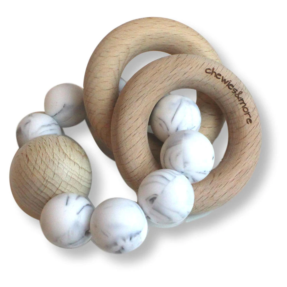 - Siliconen kralen, grote houten kraal en 2 houten ringen.