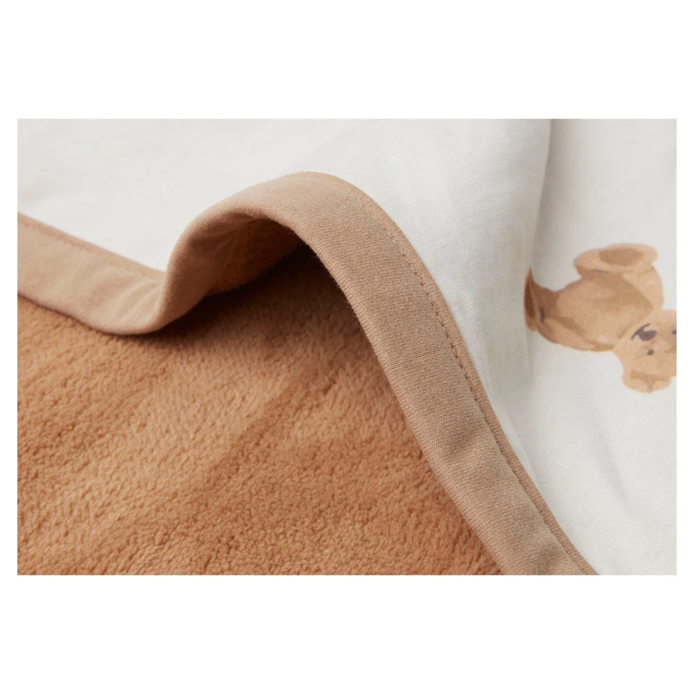 De deken is gemaakt van zacht, ademend materiaal dat je baby warm en comfortabel zal houden. De fleece achterkant maakt het extra zacht en knus. De deken is ook machinewasbaar en kan in de droger, wat het gemakkelijk in onderhoud maakt.
