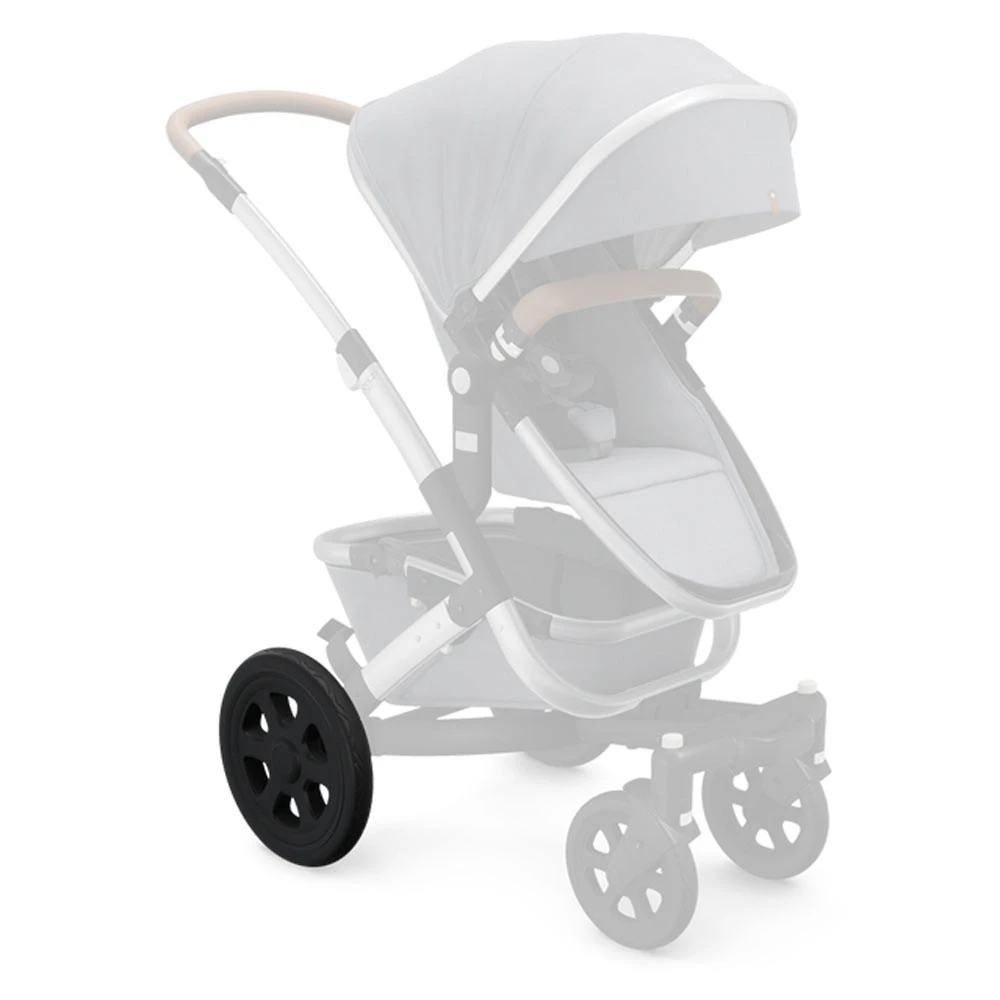 - Joolz adviseert om bij het vervangen van de achterwielen ook de voorwielen te vernieuwen. Als de achterwielen door slijtage vervangen worden, zullen de voorwielen ook afgesleten zijn. De stand van (vooral) de wiegbak kan dan niet meer optimaal zijn als alleen de achterwielen worden vervangen.