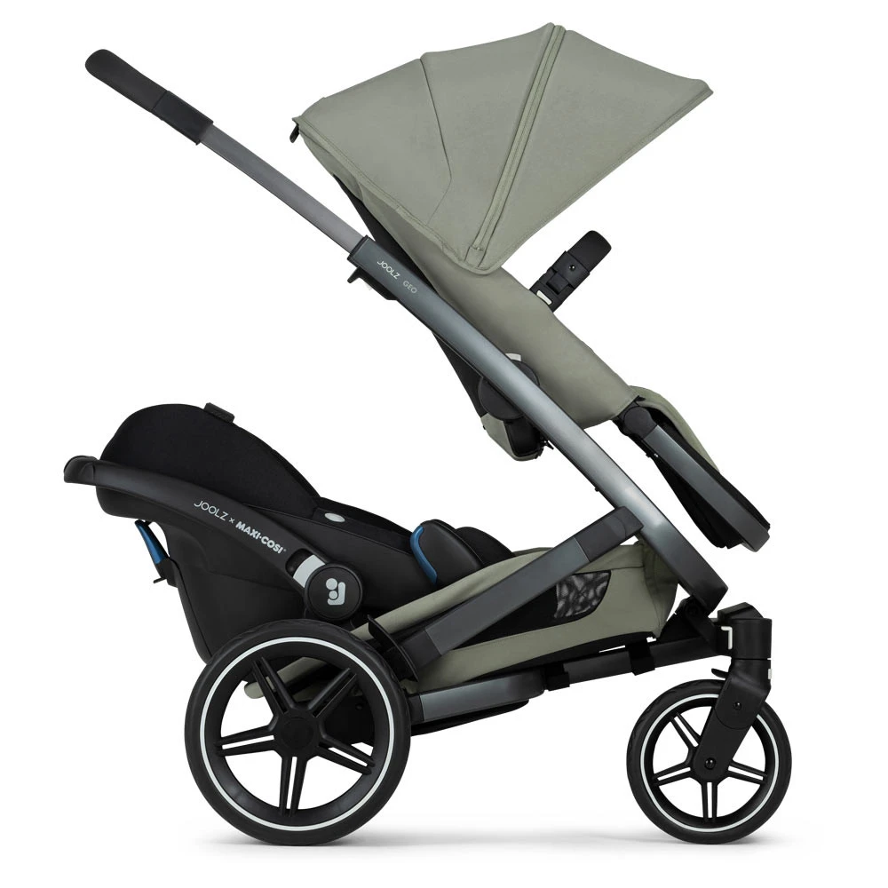 - Let op: om een tweede autostoel op de Joolz Geo3 kinderwagen te zetten, heb je ook een set bovenste autostoel adapters nodig (apart verkrijgbaar).