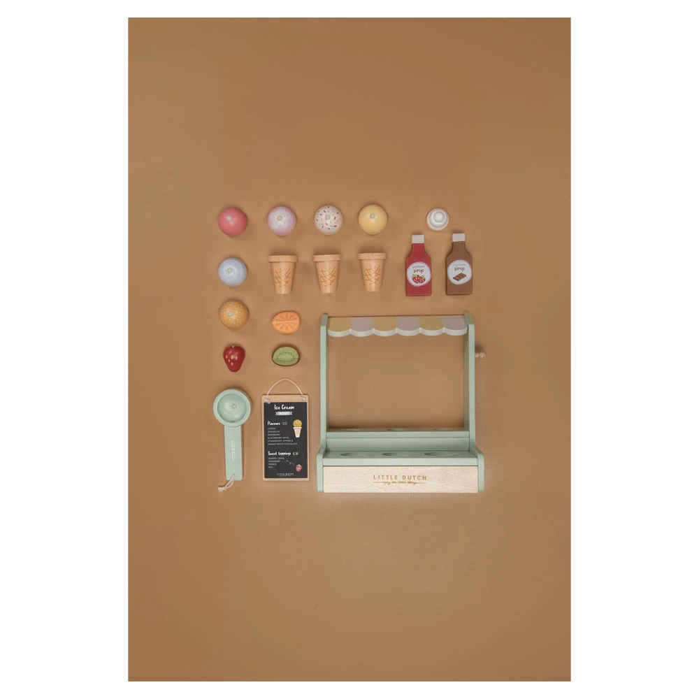 - Inhoud verpakking: IJskraam met 3 hoorntjes, verschillende ijssmaken en toppings.