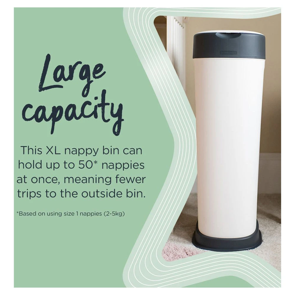 - De Tommee Tippee XL luieremmer wordt geleverd in de kleur wit met grijs accenten.